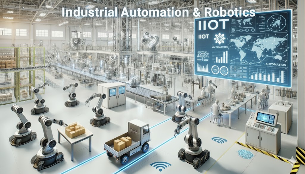Our expertise includes AI-powered robotic arms for assembly and packaging lines, autonomous mobile robots (AMR/AGV) for material handling, and integration of PLC/SCADA systems with IoT and cloud platforms for data analytics.
